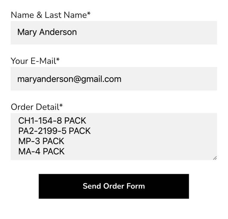 Note: When creating the order form, you must write the e-mail address you specified in the wholesale application form.